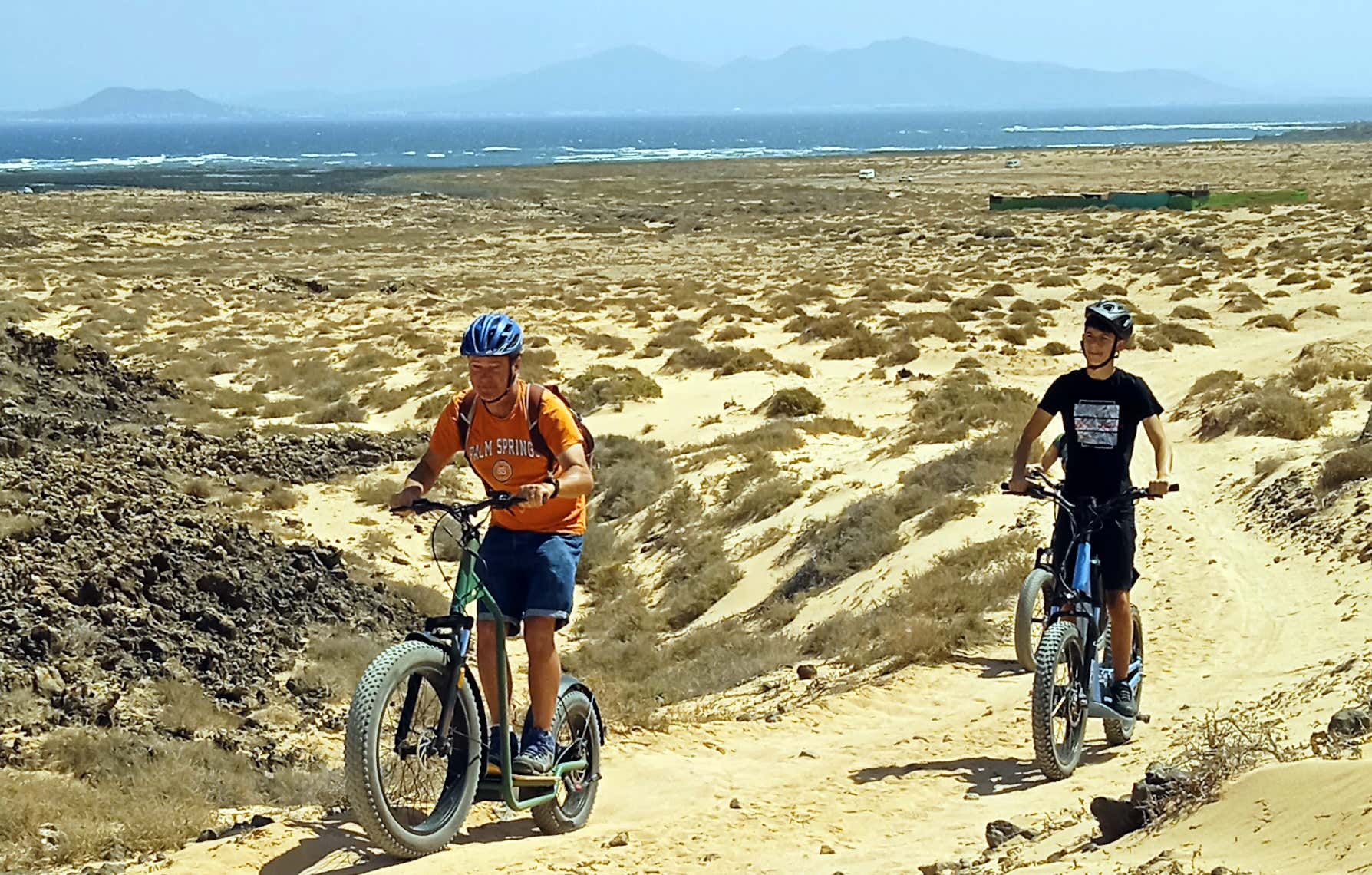 Pedalea entre cráteres, paisajes volcánicos y playas salvajes desde Corralejo a Majanicho. Un tour en e-bike con guía, paradas panorámicas y vista sobre el océano de la duración de 4 horas. ¡Será una experiencia única!