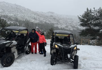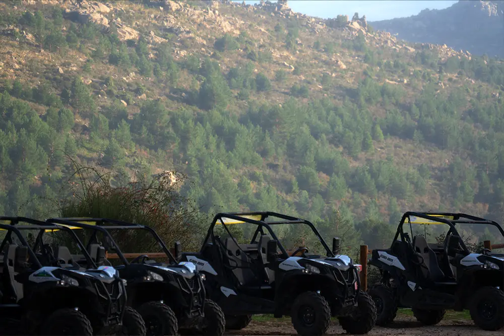 Our expedition starts at the meeting point in Navacerrada, Madrid, where we will meet 30 minutes before the booking time to get everything ready. After a brief check-in and a talk about the safety and operation of the vehicle, we will familiarise ourselves with the controls of our two-seater buggies. Once we've adjusted our goggles and checked that everything is in order, we' ll start our engines to leave the hustle and bustle behind and head into the jewel of the Sierra de Guadarrama.