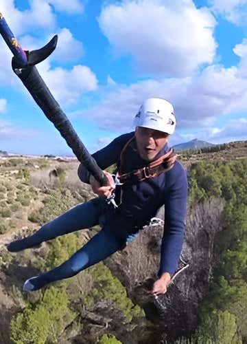 In the jumping area over the 50 m viaduct that crosses the Polop river we will receive the final instructions and, when everything is ready, the moment will come. .. A pendulum jump with a drop of about 20 metres! Scream, let off steam, nobody will judge you here.