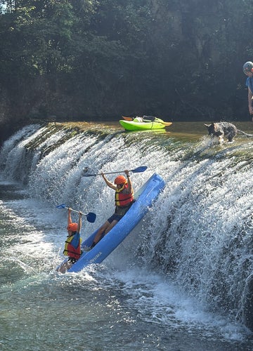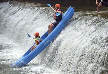 - Feel the adrenaline rush as you jump over the dam in your canoe.