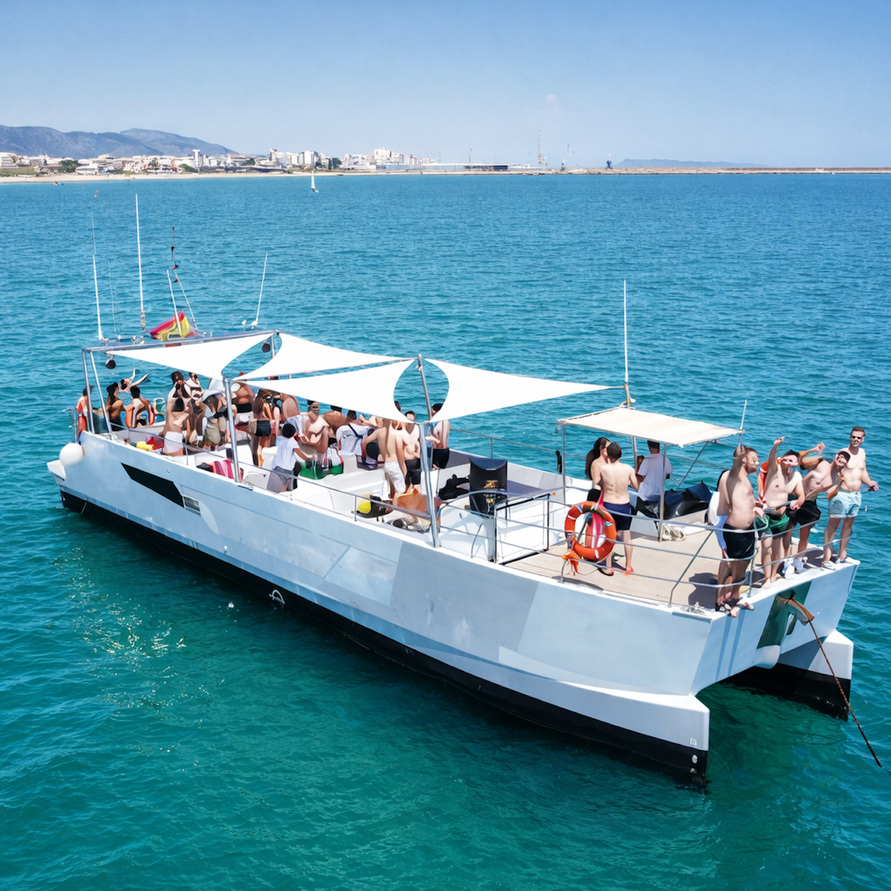 A spacious catamaran, the Costa del Sol and the best company.
