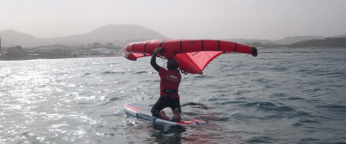Wing foil lesson in Corralejo in the north of Fuerteventura