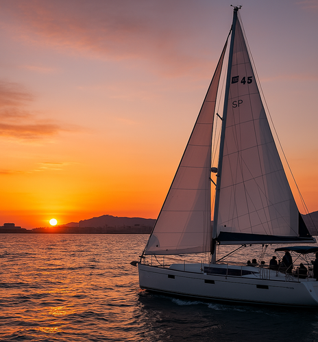 To make the most of the golden hour , an aperitif of cold meats, cheeses and fruit will be served, accompanied by alcoholic and non-alcoholic drinks. Ambient music will play in the background while we enjoy the spectacle of the sunset from the sea.