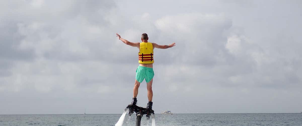 The activity is suitable as a first experience of flyboarding. To participate you must be of legal age or at least 16 years old and have a signed authorisation .