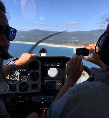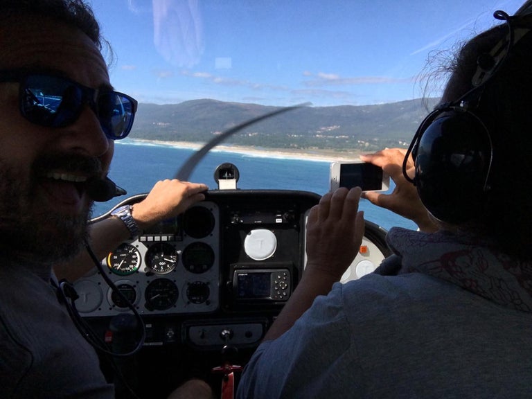You will fly in a two-seater plane with dual controls, but it will not be possible to take control.