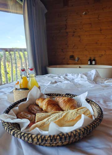 There are 4 cabins available with this package, all of which have views of the forest or Montseny and include a welcome bottle of cava . They are equipped with full private bathroom, towels and hygiene products. There is also a kettle, herbal teas and biscuits in the common areas.