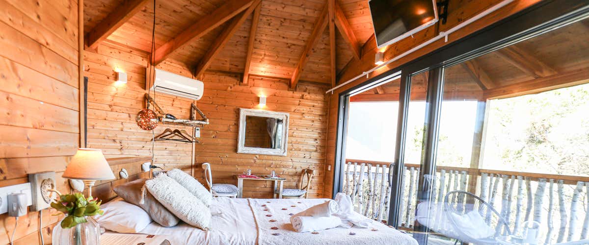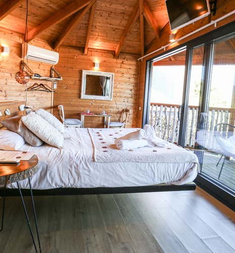 Break with routine and swap the noise of the city for a romantic getaway in Montseny. In a charming corner of Vallés Oriental, a private cabin with views of the forest awaits you: a welcome bottle of cava, access to sauna and hydromassage and a full breakfast served directly in your refuge.