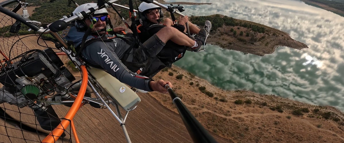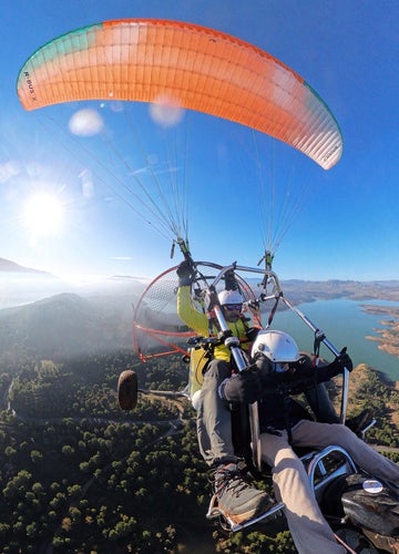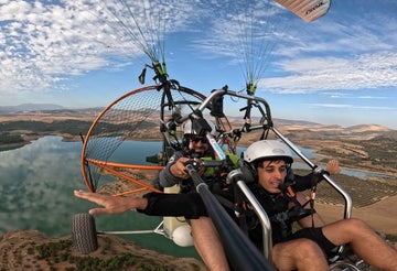 Enjoy a tandem flight with a professional pilot in the Campillos area. Fly over the lagoons and the Guadalhorce and Guadalteba reservoirs for 15 or 30 minutes . You will enjoy an unbeatable view of the Malaga countryside with the silhouette of El Torcal Antequera in the distance.