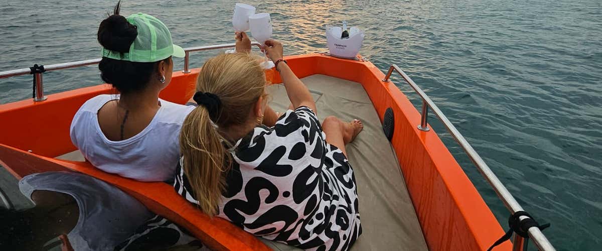 Enjoy 2 hours of fun, visiting beaches famous for their natural beauty, such as Los Náufragos or Punta Prima. Snorkel to discover the fauna and mysteries of the seabed during a 1 hour stop, until it's time to admire the vibrant colours of the sky and sea at sunset.