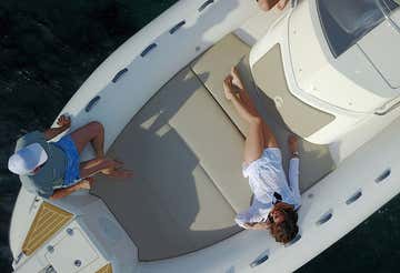 You will sail aboard an 8.5 metre longCapelli 850 Tempest semi-rigid motorboat with two 200 hp Suzuki engines. The boat has an awning, sundeck, comfortable side seats and bathing ladder.