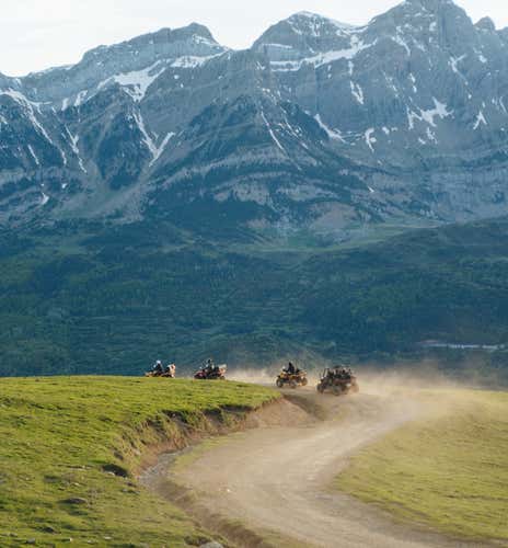 This buggy route in the Tena Valley takes you from Hoz de Jaca to the domains of Panticosa, up mountain tracks with 360º views. You will drive between forests, viewpoints and high roads, where the peaks merge with the sky.