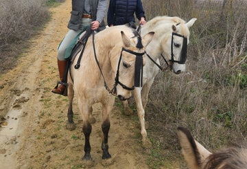 Your appointment will start 10 minutes before the agreed time at the meeting point in Camas, a privileged location in the heart of the province of Seville, where you will be greeted and welcomed. The experience will begin with a 10-minute approach, a time dedicated exclusively to you being able to caress and connect deeply with the horses in a private way. During this time, the guide will give you some basic and theoretical notions about handling and communicating with the animal so that you will feel safe and confident before setting off. These noble companions, affectionately known as Marismeño, Rayo or Cherokee, are recovered horses that have found a second chance here and that will give you their confidence to guide you.