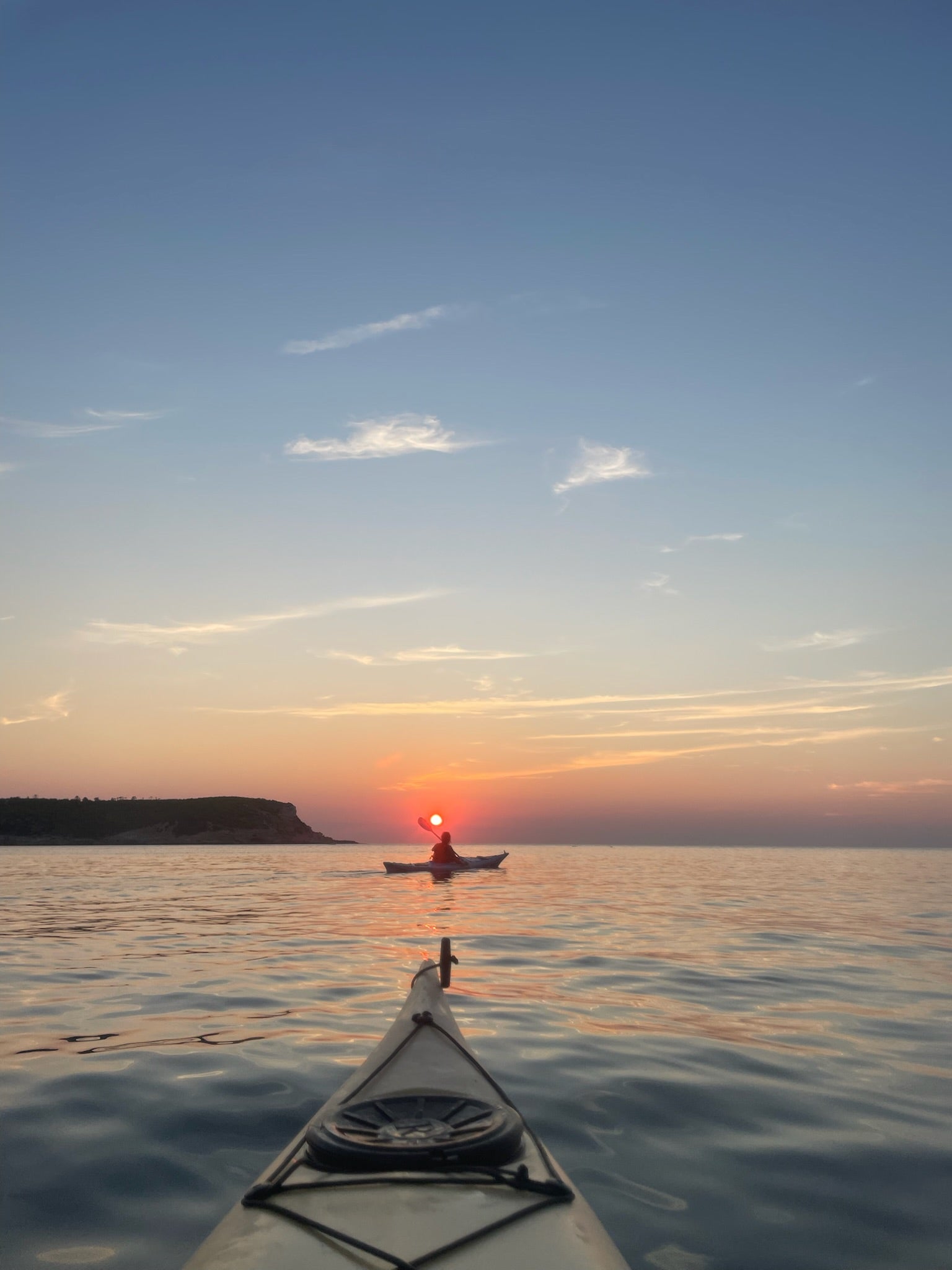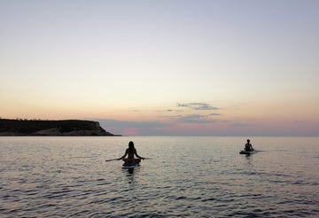 We will continue paddling towards the large bay of Cala Xarraca. During the route we will be accompanied by the silhouette of the Moscarter lighthouse, the northernmost point of the island. Once we reach the bay, we will have time to relax and enjoy the views or, if we feel like it, dive in for a bit of snorkelling before the sky starts to change colour.