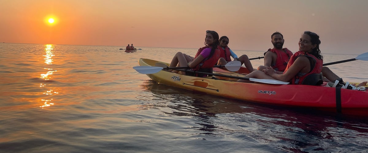 Kayak route at sunset around Portinatx and Cala Xarraca in Ibiza