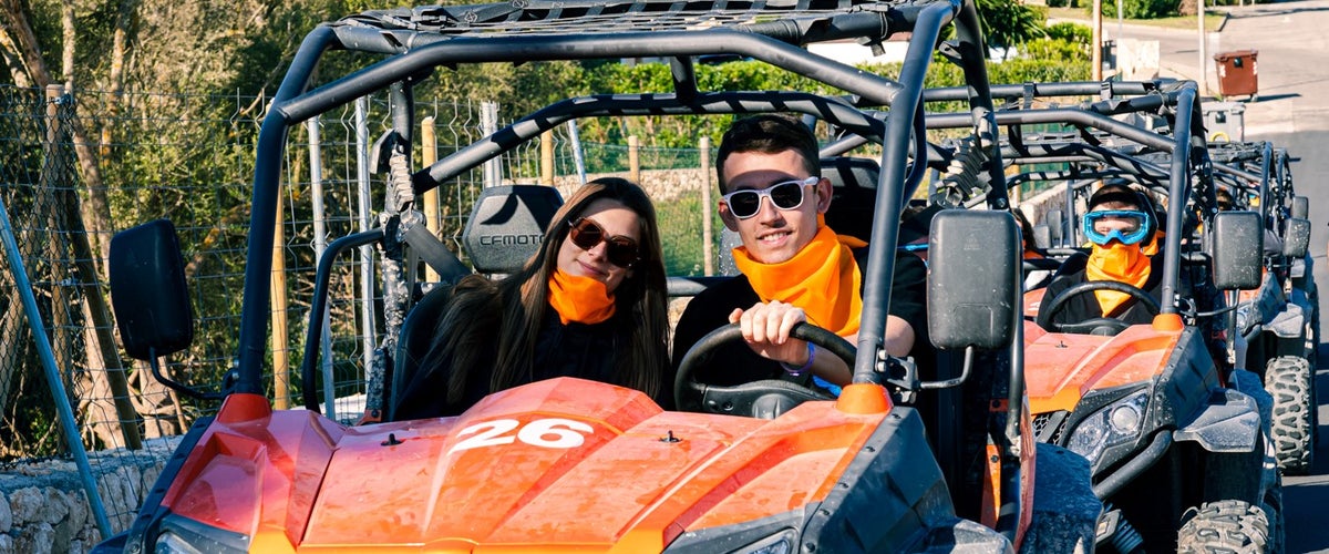 After the free pick-up at our hotel or accommodation (from the east) or arriving directly at the meeting point in Cala Mandia, we will meet the team to start the adventure. The instructor will welcome us and, in a friendly and relaxed atmosphere, will explain how the buggy works, the safety rules and how the route will unfold. In a few minutes we will be ready to start the buggy and start enjoying ourselves.