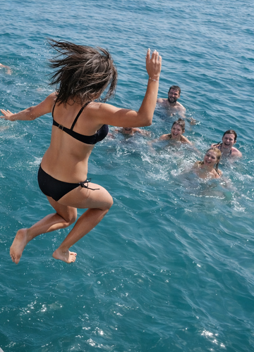 - Relax with a drink on deck or go for a swim in the open sea.