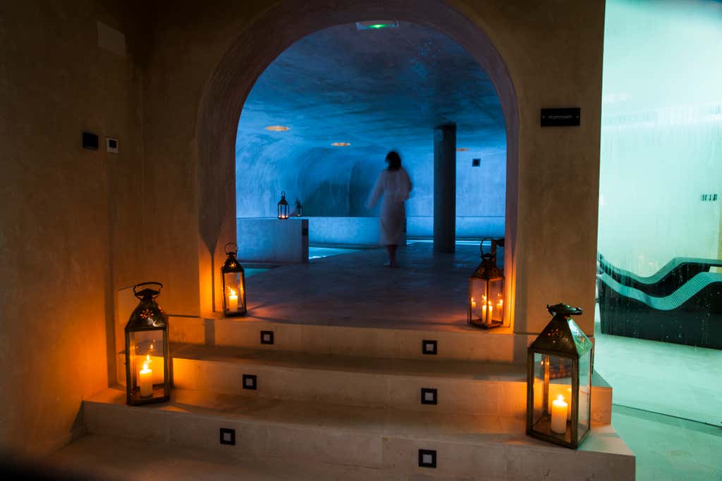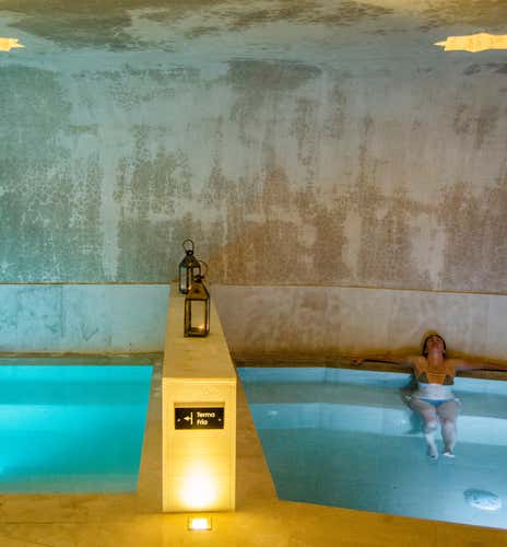 We will be given a bathrobe and a brief explanation on how to make the most of the thermal circuit inspired by the Arene baths of the ḥammām. We will have 60 minutes to do the circuit at our own pace, alternating the three thermal baths at different temperatures: hot, warm and cold water.