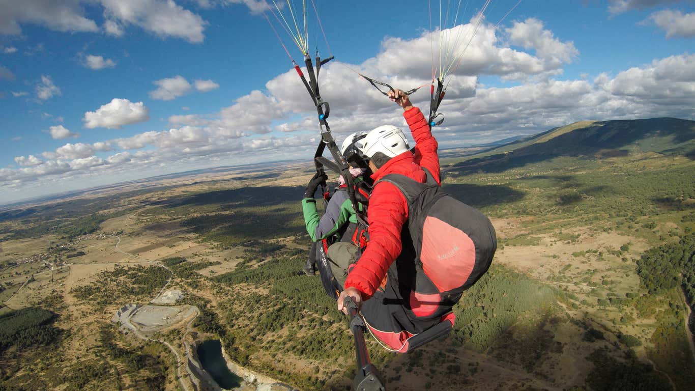 Fly in a tandem paramotor over Arcones (Segovia) and discover the pleasure of gliding between mountains and forests for 20 minutes. A professional pilot will take care of everything: you just enjoy the sky.