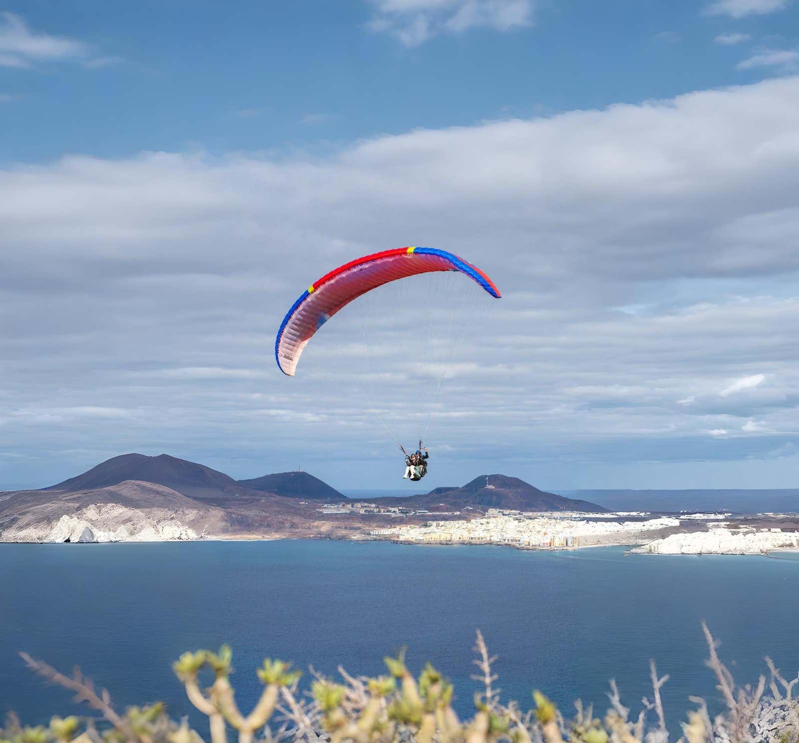 Discover what it feels like to take your feet off the ground and soar freely with a tandem paragliding flight in Gran Canaria. A short run... and in seconds you'll be soaring through the sky, with Las Palmas under your feet. 15 minutes of unforgettable aerial experience to enjoy the views and the feeling of freedom. Dare!