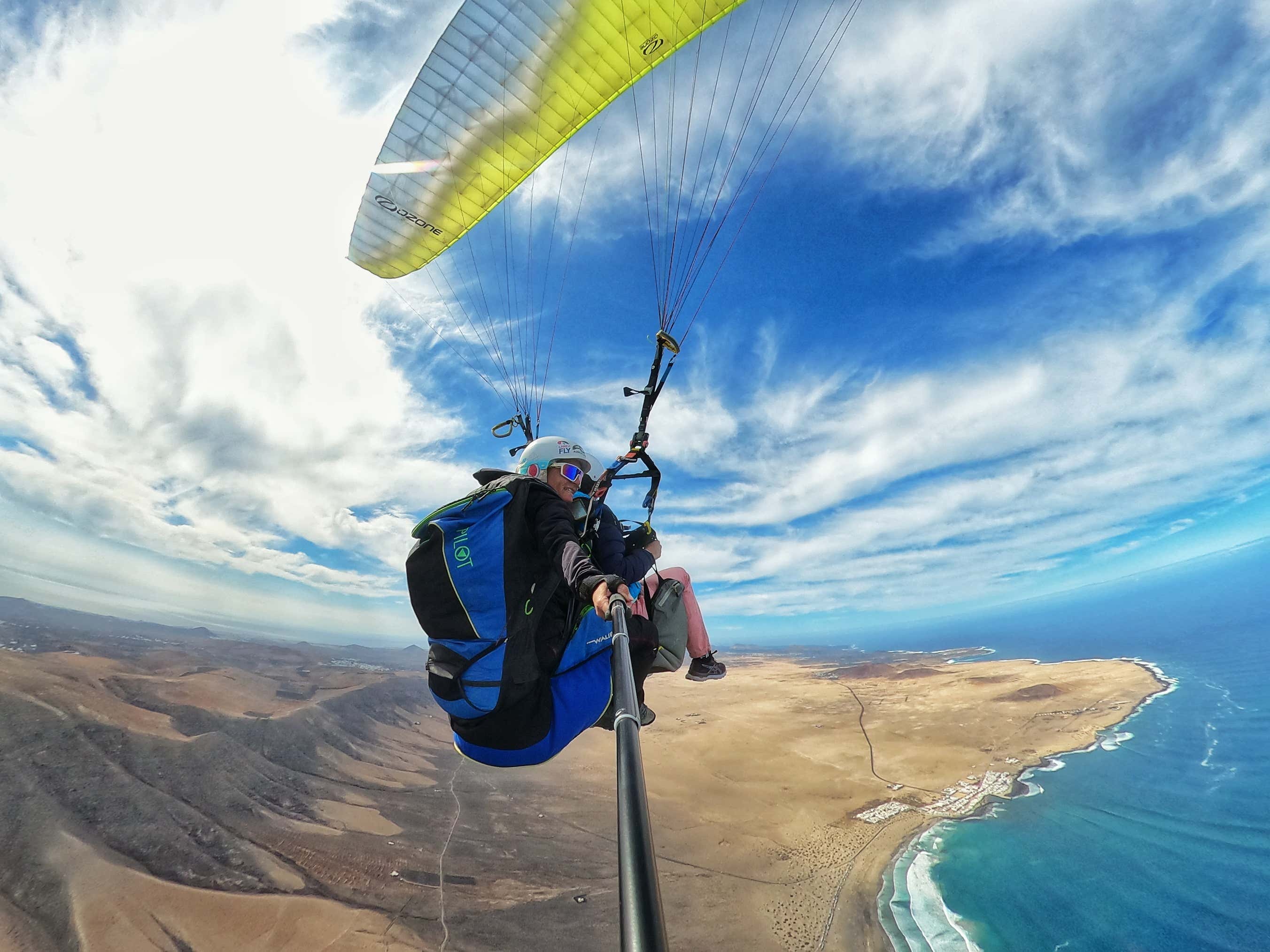 Vive una experiencia única en parapente biplaza en Lanzarote. ¡Vuela entre paisajes increíbles y el océano Atlántico! Te acompañará un piloto experto: adrenalina, libertad y vistas maravillosas te esperan.