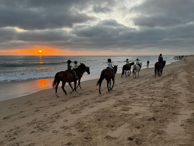 Disfruta de un paseo a caballo de 1 hora y media por la arena dorada de la Playa de Mangueta, un paraíso virgen donde el tiempo parece detenerse. Contempla el espectacular atardecer frente al Atlántico, divisa la silueta del Faro de Trafalgar y déjate llevar por el sonido de las olas en un entorno natural único. Descubre la paz de cabalgar a orillas del mar en este recorrido diseñado para que la brisa marina y la luz de Cádiz sean tus mejores acompañantes.
