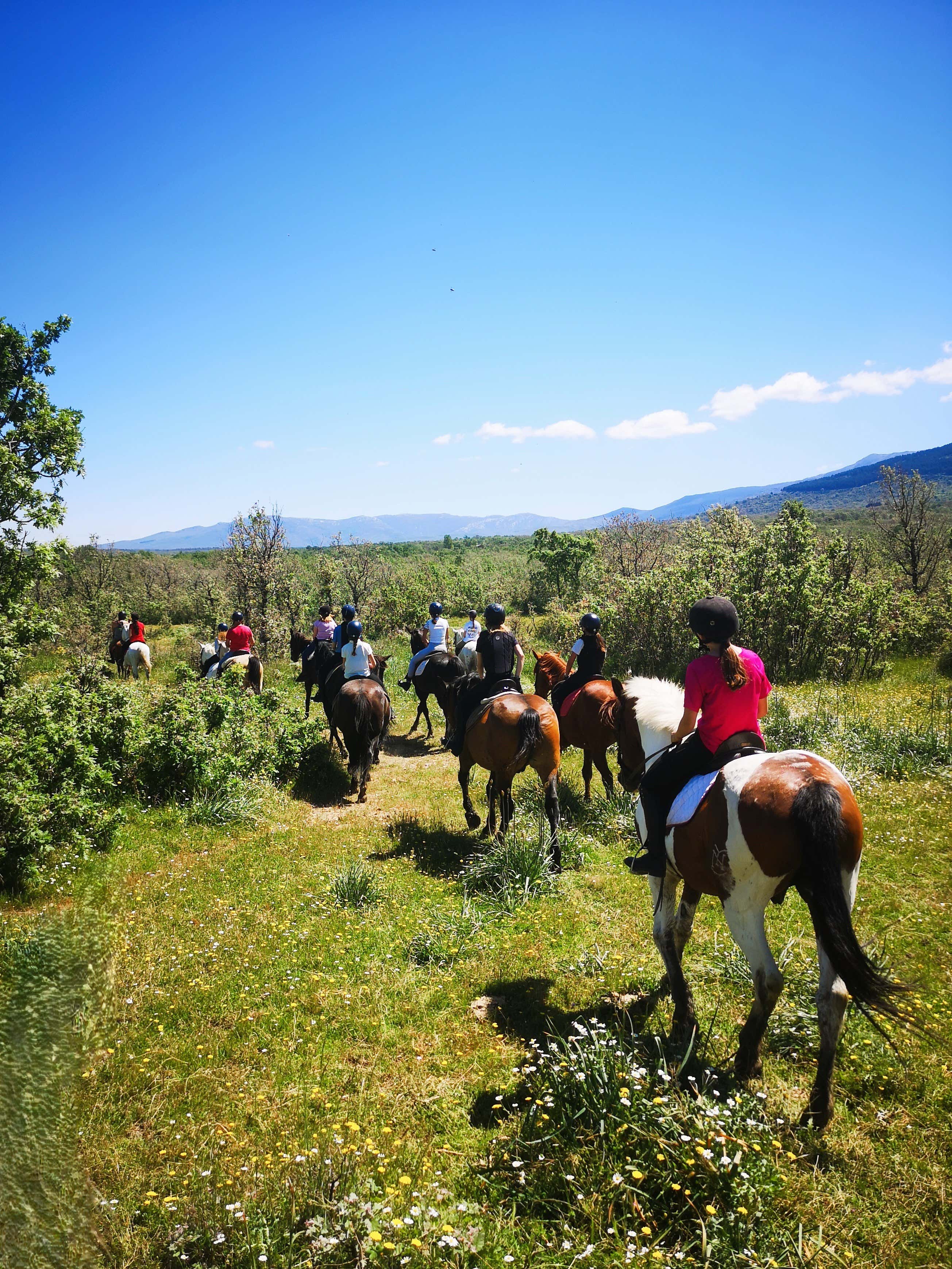 Deja que el caballo marque el paso y el paisaje haga el resto. Disfruta de una experiencia de 2 horas que incluye un paseo a caballo entre praderas, bosques y paisajes de montaña cerca de Madrid, acompañado por guías titulados y con refresco incluido al finalizar el recorrido.