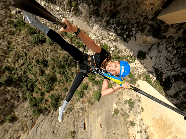 El descenso en caída libre dura unos segundos y luego sentirás como un pequeño tirón hacia arriba. A partir de ahí, te quedarás en el aire moviéndote como si estuvieras en un columpio. El monitor irá soltando la cuerda de seguridad poco a poco hasta que llegues abajo donde te esperará un segundo monitor que te quitará la cuerda conectada a tu arnés. Sabemos que tu intención va a ser subir y saltar otra vez. ¿Qué te apuestas?