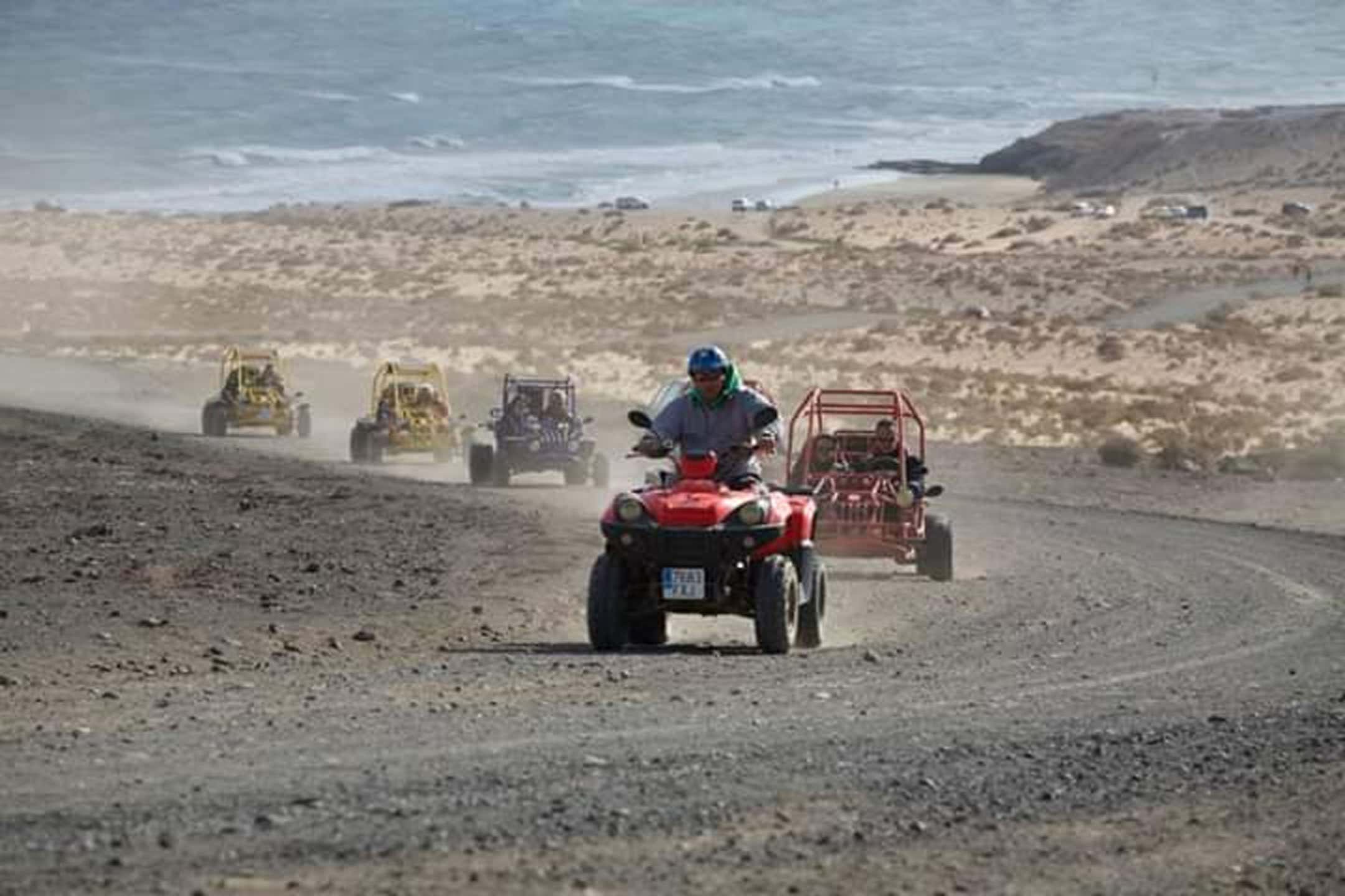 ¡Parte desde Costa Calma y guía un buggy entre desiertos y playas negras hasta Playa de Ugán\! Admira los panoramas de La Pared y Playa Sotavento, haz una pausa en un bar local y disfruta de una aventura de 3 horas entre naturaleza y adrenalina, con un guía experto a tu lado.