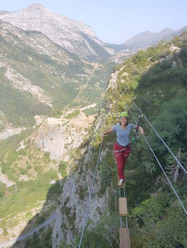La vía ferrata de Iserías es una de las más emocionantes del Pirineo Aragonés. Desde Canfranc-Estación, asciende por una pared de 410 metros con puentes, desplomes y hasta un péndulo. Un recorrido aéreo y técnico que exigen determinación y sangre fría. El esfuerzo te recompensará con vistas impresionantes y un subidón inolvidable. ¿Aceptas el reto?