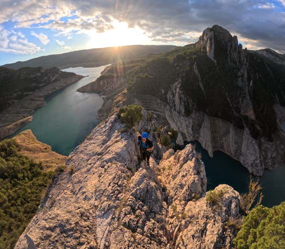 Disfruta 3 horas de aventura en las vías ferratas Teletubbies y Olmo Soler, en el impresionante Congost de Mont-Rebei. Perfectas para iniciarse o repetir, con tramos sencillos, crestas rocosas y pasos aéreos sobre el embalse de Canelles, pasando por la emblemática ermita de la Pertusa.